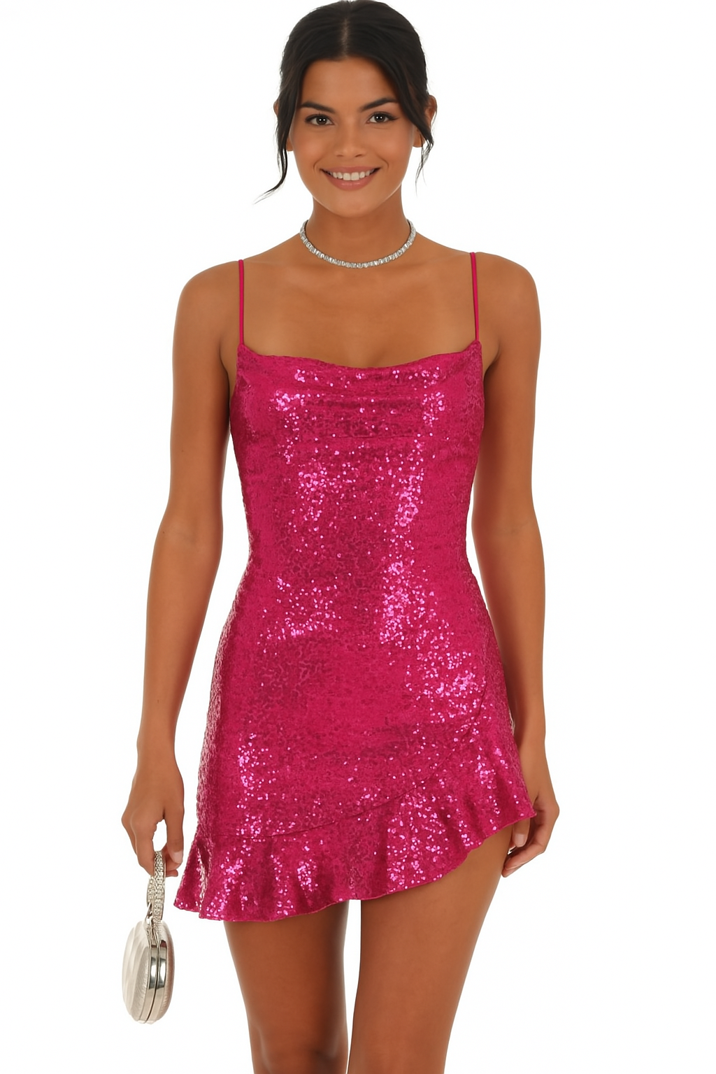 This Sequin Ruffled Slit Dress in Pink is made for main character moments. With sparkles that catch the light just right, a flirty thigh-high slit, and ruffles that dance with every step — this dress brings drama in all the right ways. Perfect for nights out, birthdays, or anytime you feel like being unforgettable.